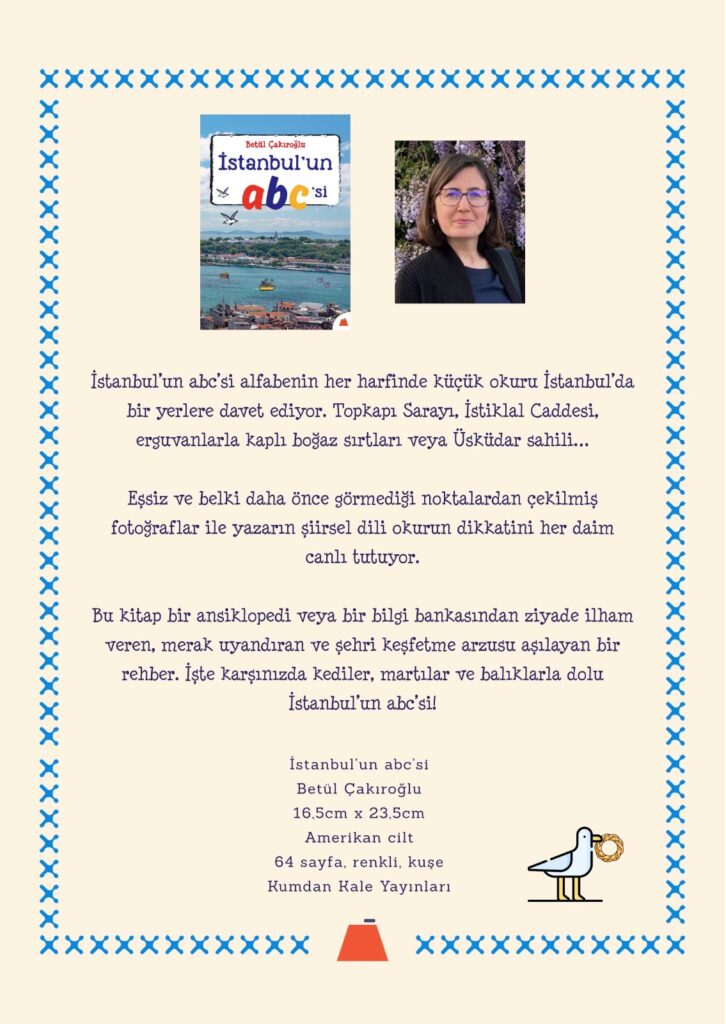 İstanbul’un abc’si alfabenin her harfinde küçük okuru İstanbul’da bir yerlere davet ediyor. Topkapı Sarayı, İstiklal Caddesi, erguvanlarla kaplı boğaz sırtları veya Üsküdar sahili…