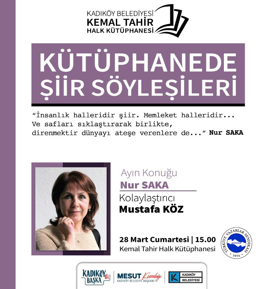 Kadıköy Belediyesi iş birliğiyle düzenlenen “Kütüphanede Şiir Söyleşileri” kapsamında gerçekleştirilen etkinlikte, şair Nur Saka edebiyatseverlerle bir araya geldi. Kemal Tahir Halk Kütüphanesi’nde yoğun katılımla gerçekleşen program, şiirin düşünsel ve toplumsal boyutlarına odaklanan içeriğiyle dikkat çekti.