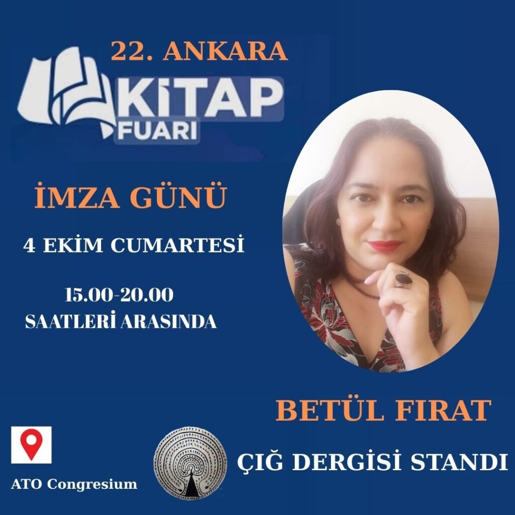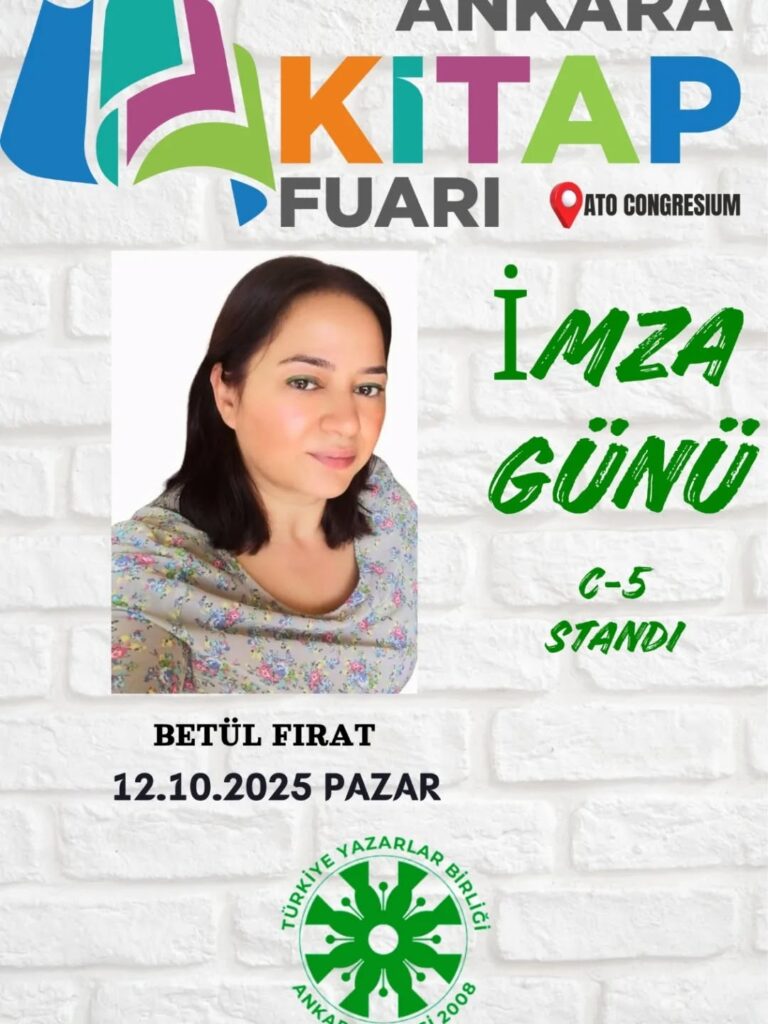 Yazaar ve Şair Betül Fırat da fuarda Okur Yazar Buluşmaları ile okurları ile buluşacak. Bütün kitapseverleri beklemekte.